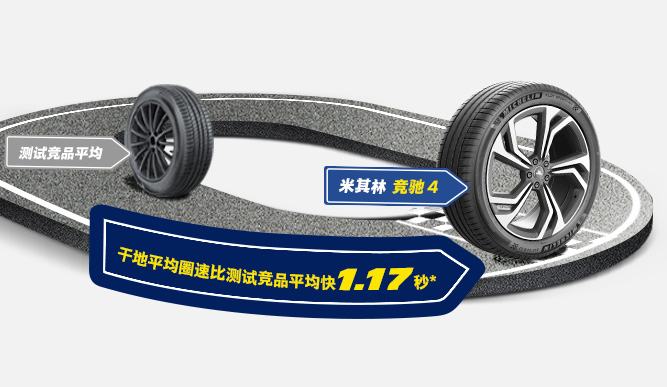 米其林 競馳 4 PILOT SPORT 4 干地平均圈速比測試競品平均快 1.17 秒*