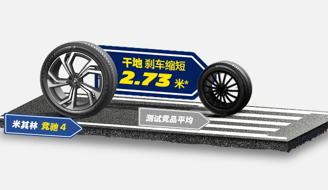 米其林 競馳 4 PILOT SPORT 4 干地剎車距離比測試競品平均縮短 2.73 米*